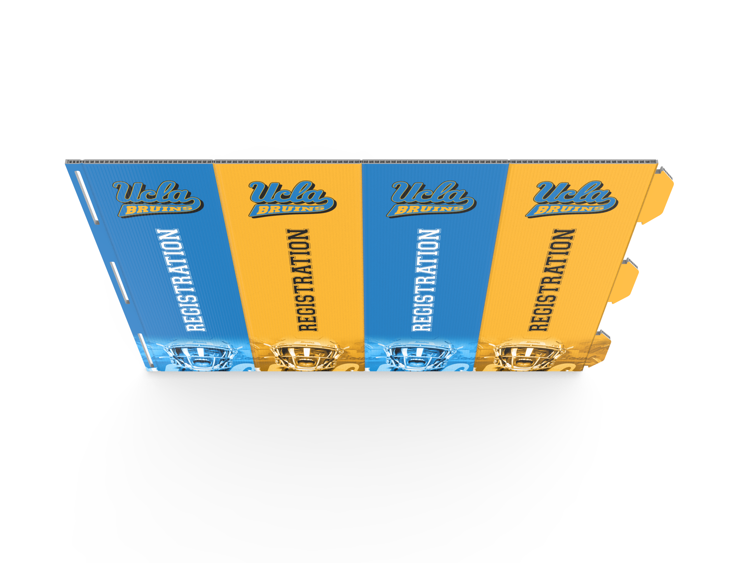 Our Premier Table Billboard assembles easily with two clamps that lock at the ends of your 6′ table securely. This over-the-top banner display sits tall above your trade show or event table so that it stands out to everyone in attendance.